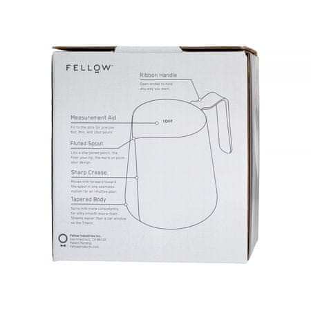 Lastnosti: – skupna prostornina 350 ml – izdelan iz visokokakovostnega nerjavečega jekla tipa 304 18/8 – oznake na notranji steni olajšajo delo. Skala označuje 6, 8 in 10 unč (180, 240 oziroma 300 ml) – Natančen izliv omogoča izdelavo podrobnih vzorcev – Izlivni nastavek sega skoraj do dna vrča, zato imate večji nadzor nad vlivanjem mleka – Ustrezno oblikovan ročaj omogoča udobno držanje vrča pod različnimi koti. Ročaj ima edinstveno obliko – njegov spodnji del se ne povezuje s telesom vrča – Telo vrča se proti dnu razširi, zato mleko med penjenjem enakomerneje kroži.