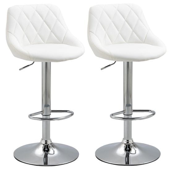 HOMCOM HOMCOM Komplet 2 barskih stolčkov, nastavljiva višina s kovinskim podnožjem in sedežem iz usnja, sodobni stolčki z naslonom in podnožjem, 46x48x83-104cm, beli