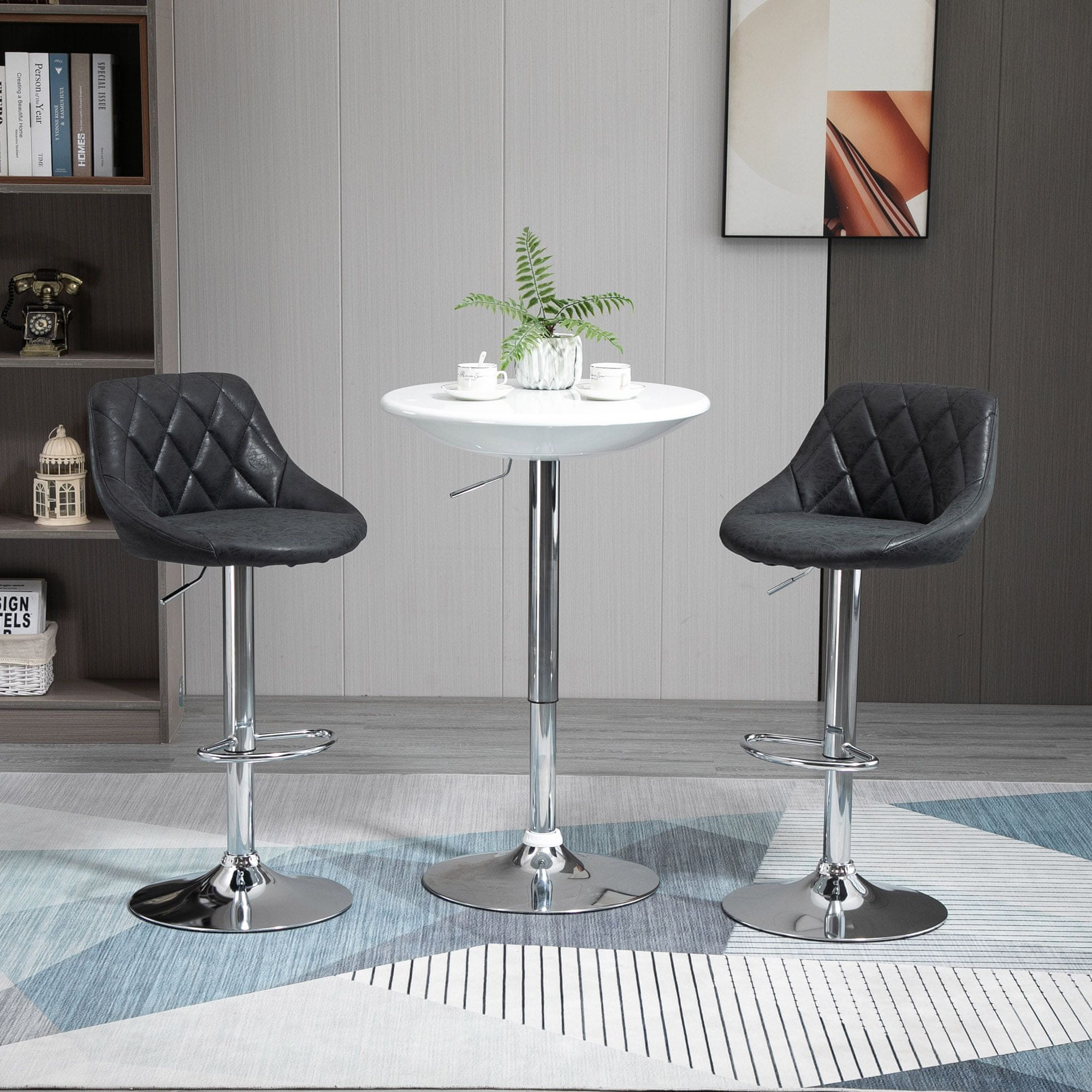 HOMCOM HOMCOM Komplet 2 barskih stolčkov z nastavljivo višino, kovinsko podlago in sedežem iz usnja, sodobni vrtljivi stolčki z naslonom in podnožjem 46x48x83-104cm, črna