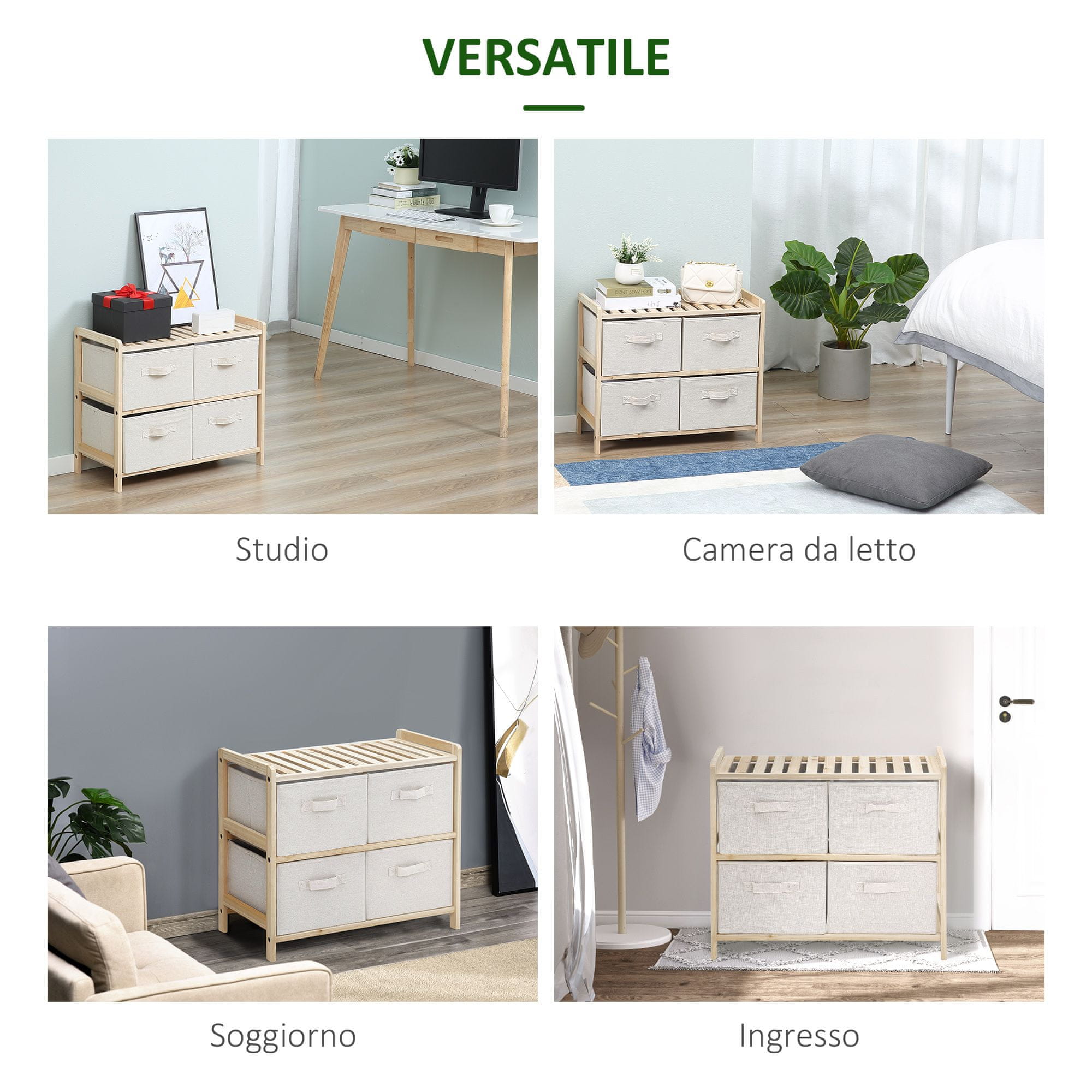 HOMCOM HOMCOM Predalnik s 6 zložljivimi in odstranljivimi predali iz bež tkanine, lesena večnamenska omara za spalnico ali predsobo, 59x28x70cm