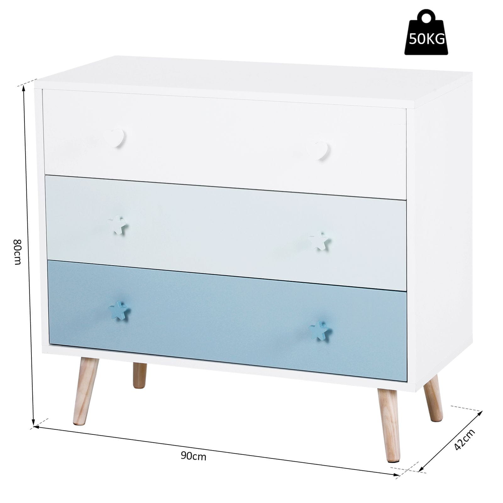 HOMCOM komoda za otroško sobo, omara za igrače s 3 lesenimi predali, bela in modra (90x42x80cm)