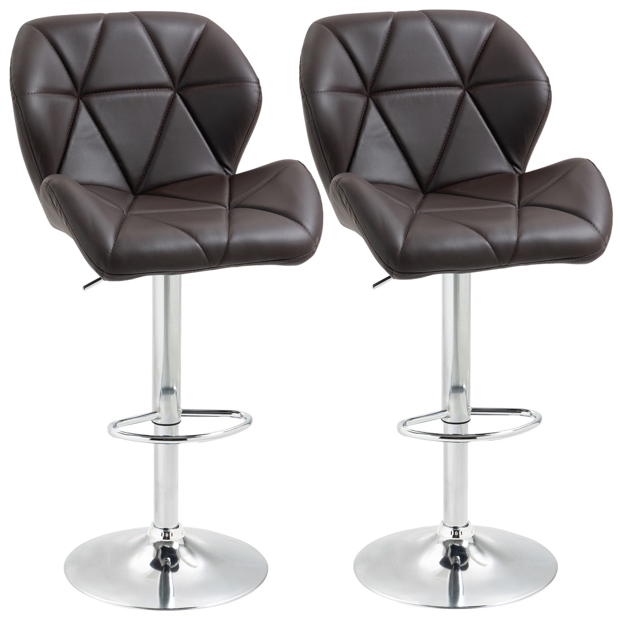 HOMCOM Komplet 2 barskih stolčkov z nastavljivo višino, kovinsko podlago in sedežem iz usnja, kuhinjski stolčki z naslonom za hrbet in noge, 51,5x57,5x93- 114,5 cm, rjava in Silver