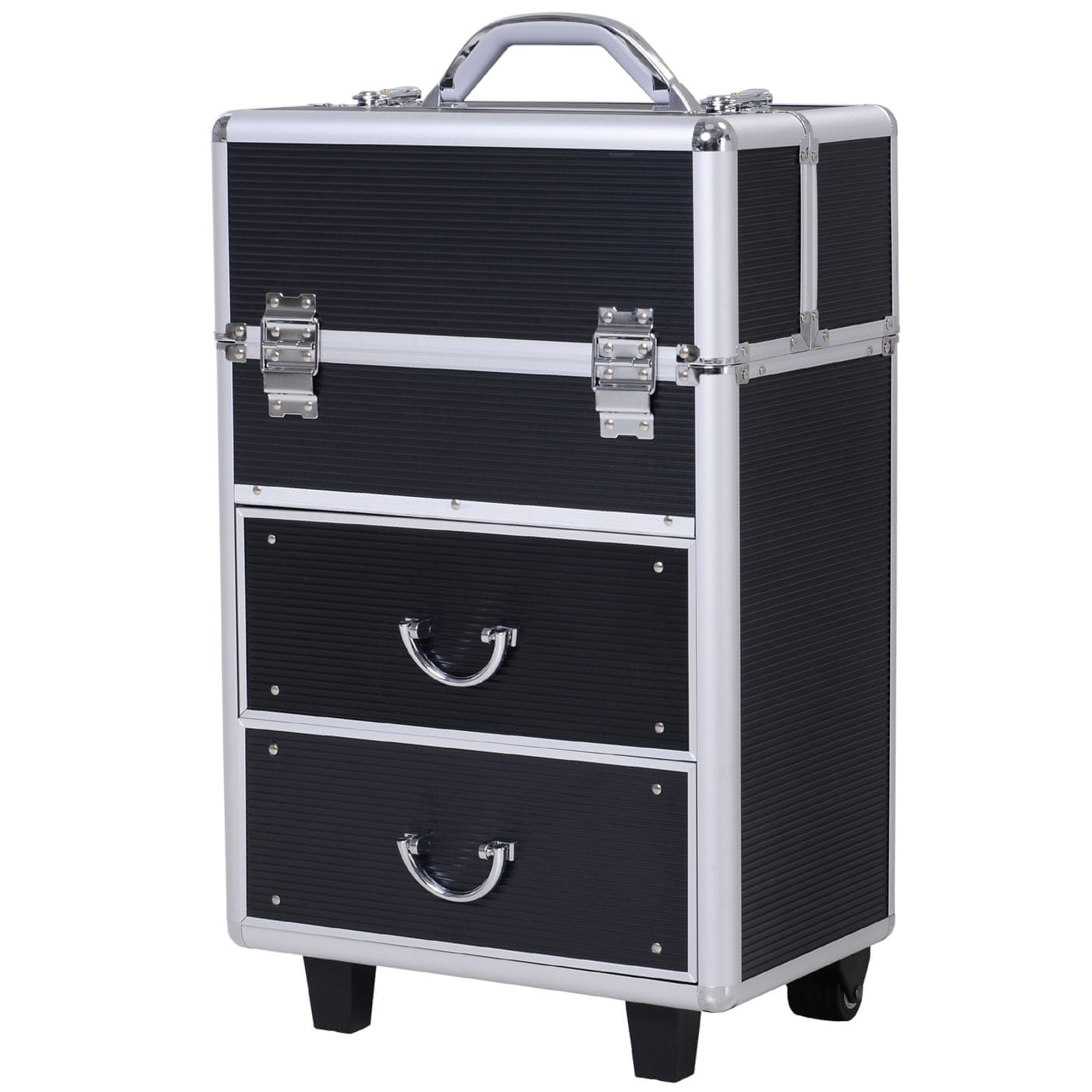 HOMCOM profesionalni kovček za ličila, aluminijast voziček za ličila, 2 kolesi, črn 36x23x58- 96cm