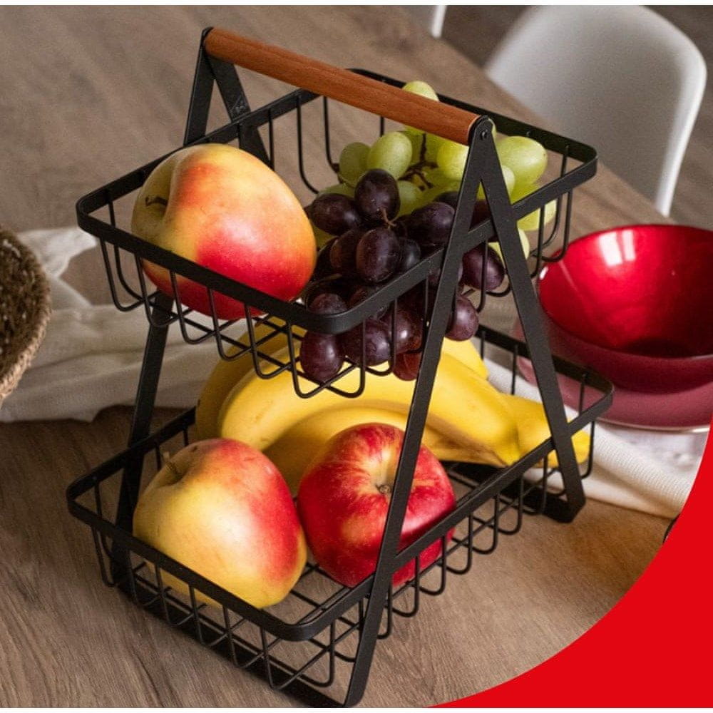 • Dvodesna zasnova: Košara ima dve etaži, kar vam omogoča shranjevanje več sadja in zelenjave v omejenem prostoru.