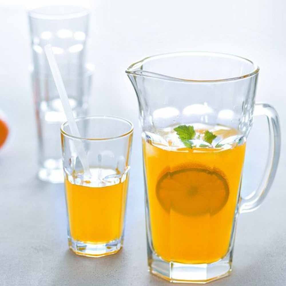 Čudovito oblikovan komplet za pitje Rock Drinking Set je sestavljen iz šestih kozarcev in vrča. Njegov preprost in praktičen slog je idealen za vsakodnevno uporabo. Izdelan je iz najkakovostnejšega stekla in je primeren za pomivanje v pomivalnem stroju. Pakiran v kartonski škatli je odlično darilo.
