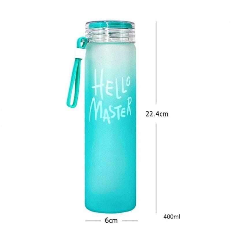 Ombre steklenica za vodo znamke Lifevy s prostornino 400 ml je odličen spremljevalec za vsakodnevno hidracijo. Steklenička je izdelana iz stekla, kar ji daje eleganten videz, hkrati pa je lahka in praktična za prenašanje s težo le 190 g. Njen moderen ombre dizajn skupaj z drznim napisom „Hello Master“ dodaja eleganten pridih, zaradi česar je steklenička vaš osebni modni dodatek.