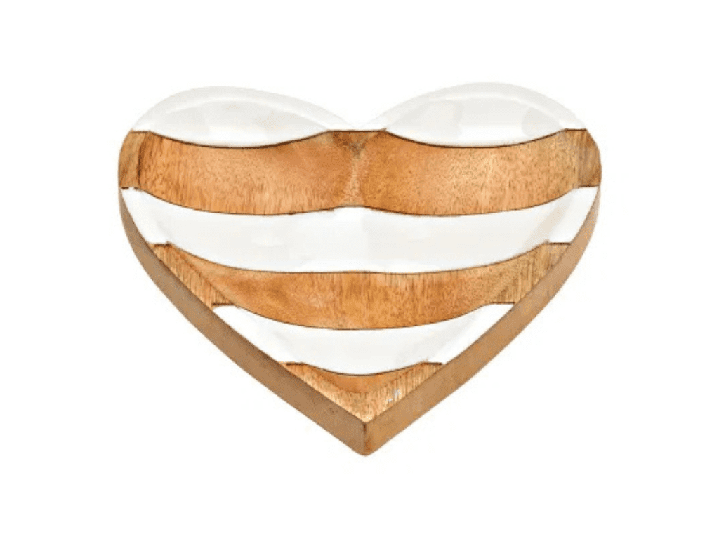 Ljubki dom Skleda v obliki srca iz mangovega lesa LOVAIRE 16x15 cm, bele črte