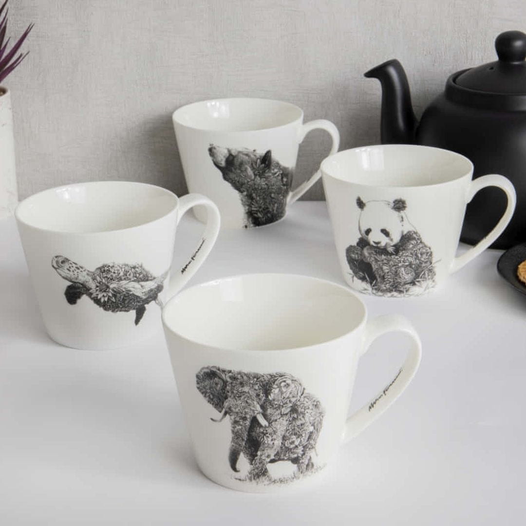 Skodelica za belo kavo Ferlazzo navdušuje z izjemnim motivom afriškega slona, prekritega z bujnim motivom listja in cvetja. Izdelana je iz belega finega porcelana, ki je primeren za uporabo v mikrovalovni pečici in pomivalnem stroju. Nastala je v sodelovanju podjetja Maxwell & Williams in umetnika iz Melbourna Marinija Ferlazza, ki je znan po slikanju s tradicionalnim perjem in črnim tušem. Pakirana je v lični embalaži, zato je lahko je lepo darilo.