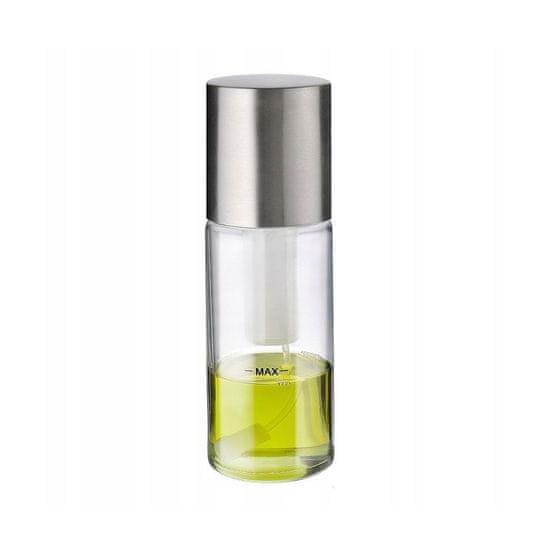 MOHA STEKLENICA S PRŠILOM – PRŠILKA je primerna za shranjevanje in pršenje olja ali kisa. Zaradi prozornega videza steklena pršilka omogoča nadzor nad ravnjo. Razpršilnik je odlična rešitev za ljudi, ki cenijo zdravo prehrano in skrbijo za svojo postavo, saj uporaba razpršila bistveno zmanjša količino maščob. Z uporabo pršilke se količina olja zmanjša za 2/3. S pršilko boste enakomerno namastili ponve, kozice ali pekače. Steklenico lahko uporabite tudi za »škropljenje« solat, mesa, pečenk in drugih jedi. Steklena posoda, pokrov iz nerjavečega jekla in plastična pršilka tvorijo preprost, eleganten dodatek, ki ga lahko operete v pomivalnem stroju.