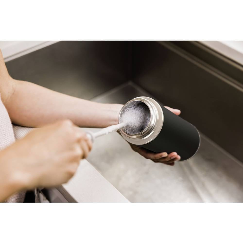 • Udobna in prenosna zasnova: Gladka odprtina omogoča udobno pitje, pokrov pa se zaskoči na mestu. Dva utora ob straneh nudita dober oprijem tudi mokrim rokam.
