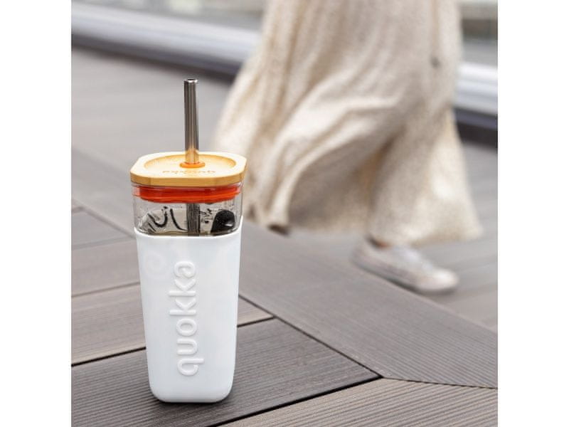Silikonska nedrseča površina ne zagotavlja le čvrstega oprijema, temveč daje kozarcu tudi sodoben in eleganten videz. Ni vam treba skrbeti, da vam bo kozarec zdrsnil iz rok – QUOKKA Cube je zasnovan tako, da vam ob vsakem požirku nudi maksimalno udobje in gotovost.
