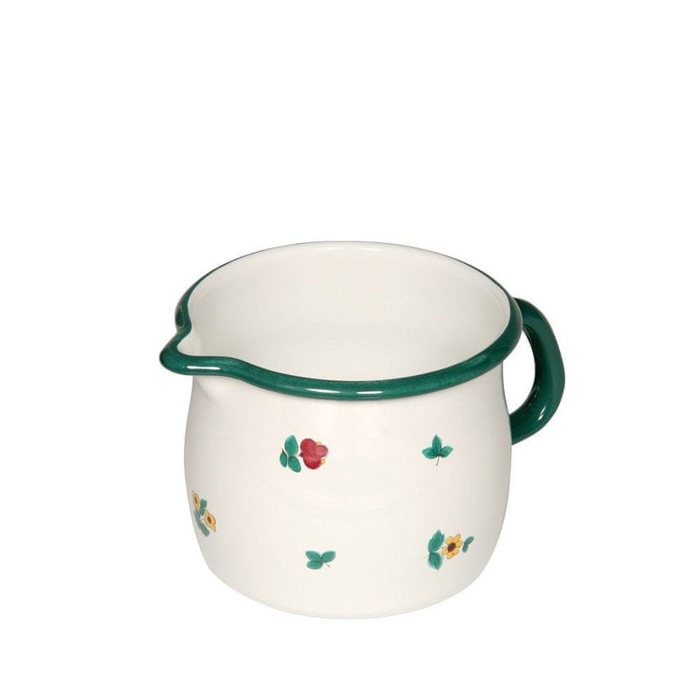 Značilnosti: Za segrevanje tekočin. Višina 11,3 cm. Premer 12 cm. Prostornina 1 liter. S praktičnim izlivom in ročajem. Primerno za vse vrste štedilnikov (plinski, električni, steklokeramični, indukcijski (odvisno od minimalnega premera, ki ga zazna štedilnik), odprti ogenj. Kuhanje z varčno energijo. Enostavno čiščenje. Naš priljubljen lonec z izlivom, tokrat v obliki sodčka: Zahvaljujoč okroglemu ročaju je lonec z izlivom primeren tudi za serviranje tekočin neposredno na mizi. Rob je zaobljen – rob v jezičku emajla – kovina je upognjena, da ustvari okrogel in stabilen rob. Ta vrč za mleko je priljubljen pomočnik v kuhinji in je na voljo v vseh naših serijah. Emajl je material iz železa, ki je bil pri visokih temperaturah spojen s steklom. Naše emajlirane izdelke lahko uporabljate na vseh vrstah štedilnikov (plinski, električni, steklokeramični, indukcijski in celo na odprtem ognju). Zahvaljujoč železnemu jedru emajl hitro prevaja toploto in jo trajnostno shranjuje, kar omogoča kuhanje z varčno energijo. Odlična higiena zaradi neporozne, gladke steklene površine. Emajlirana posoda je priporočljiva tudi za ljudi z alergijami na nikelj. Nasvet: Pri segrevanju mleka dodajte nekaj kapljic. vode v vrč in segrevajte le na srednji temperaturi; tako boste preprečili, da bi mleko zlahka zagorelo.