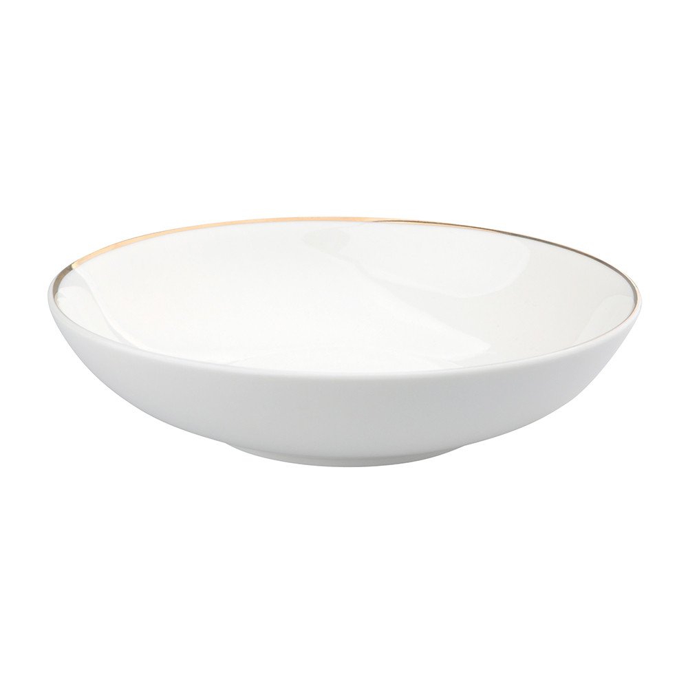 Globok krožnik iz kolekcije Bella Gold Line je eleganten kos namizne posode, ki združuje klasično obliko s subtilno dekoracijo. Kremni, ecru porcelan je zaključen z nežno zlato obrobo, ki krožniku daje prefinjen in brezčasen značaj. Popoln za serviranje juh, enolončnic, testenin ali solat.
