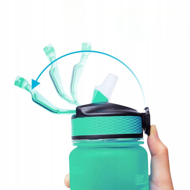 Funkcije preklopnega pokrovavarnostno ključavnicoključavnico, ki ohranja steklenico neprepustno. Za odpiranje steklenice s pritiskom na gumb zadostuje ena roka. Silikonska slamica omogoča pitje brez polivanja. Odprtina je dovolj široka za dodajanje ledenih kock in omogoča tudienostavno čiščenje.
