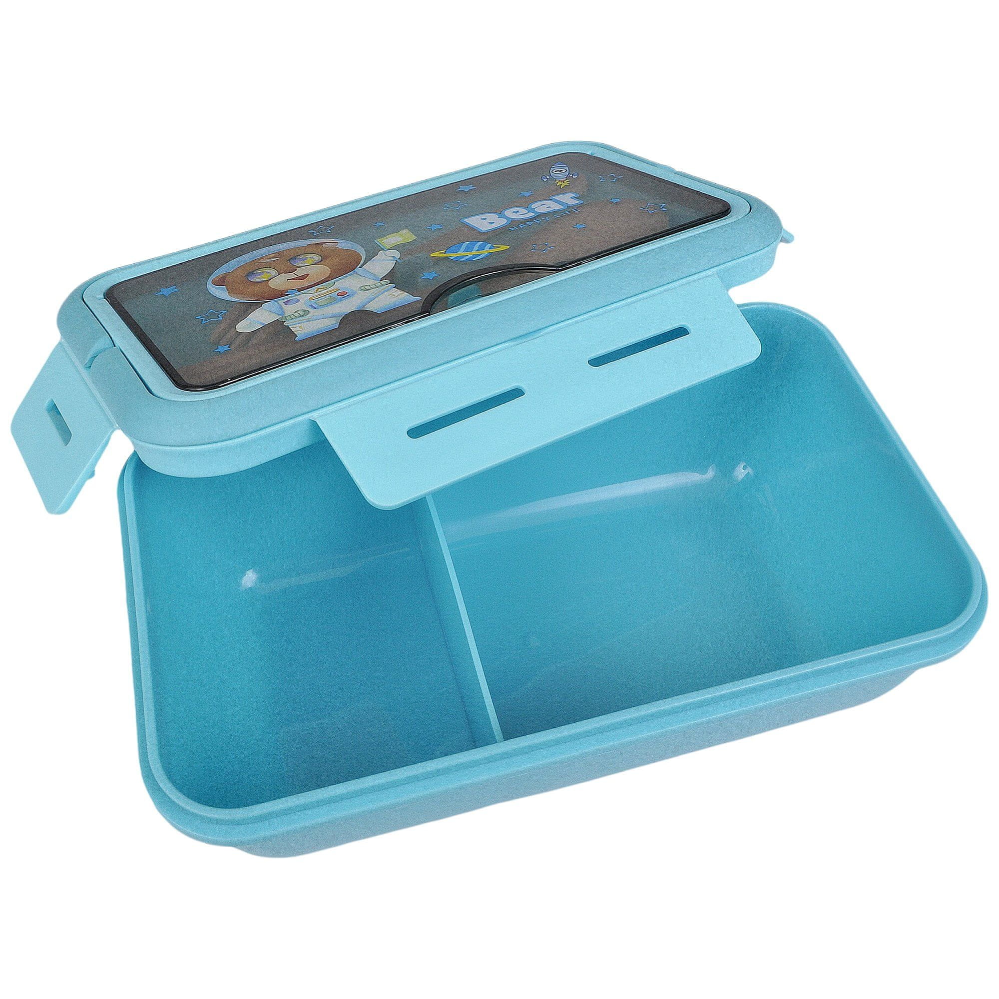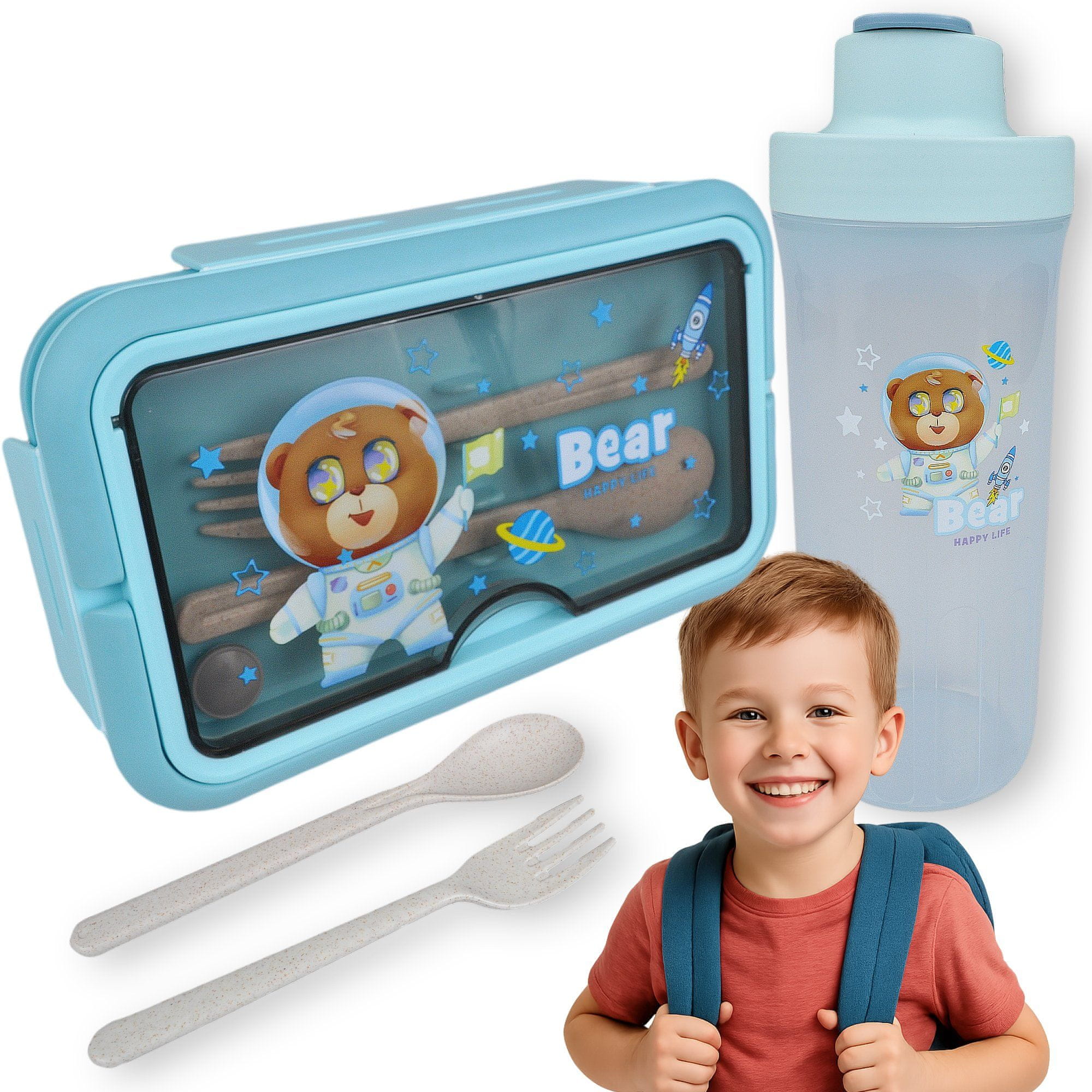 shumee Škatla za malico, posoda za zajtrk, šolska malica + jedilni pribor, modra steklenica za vodo z medvedkom