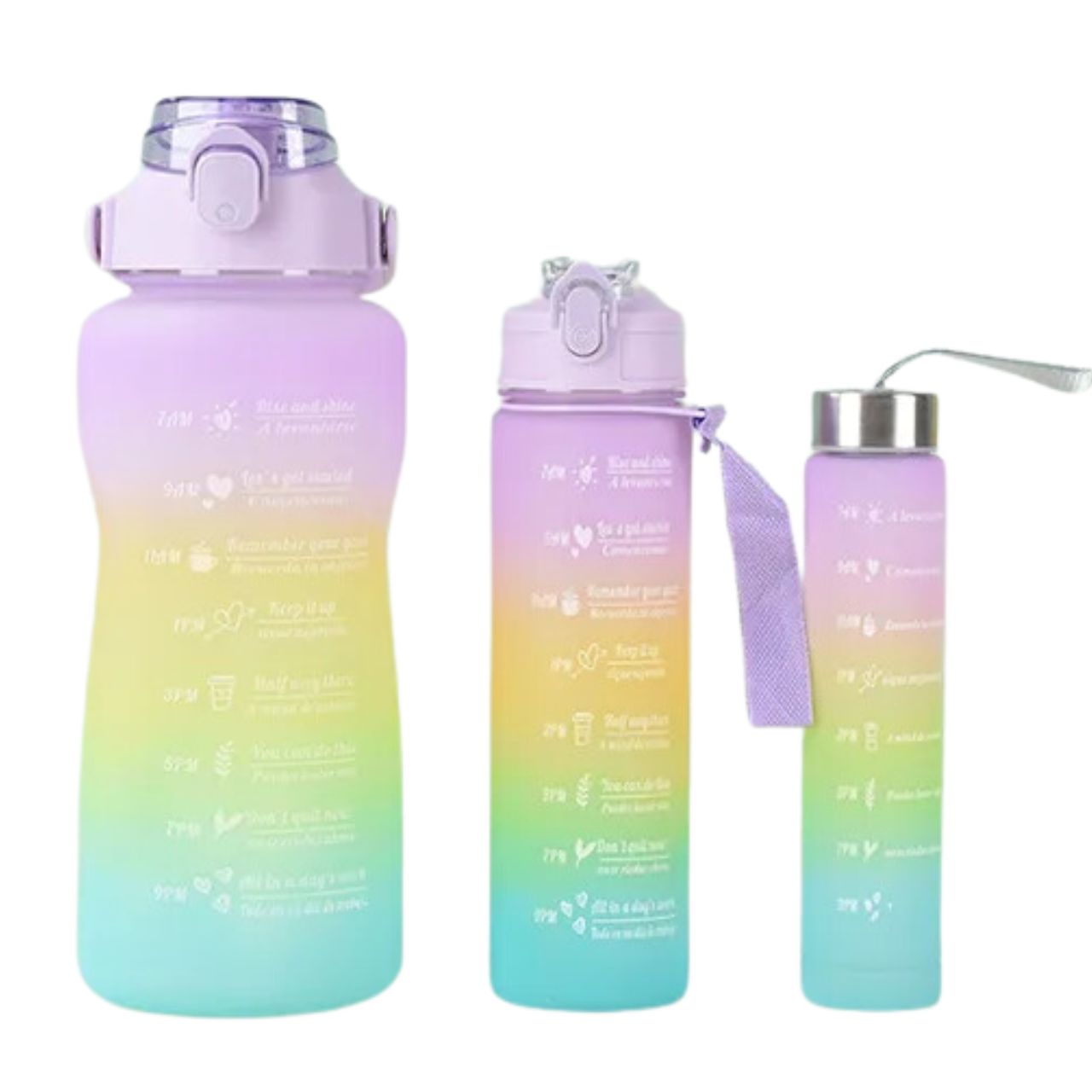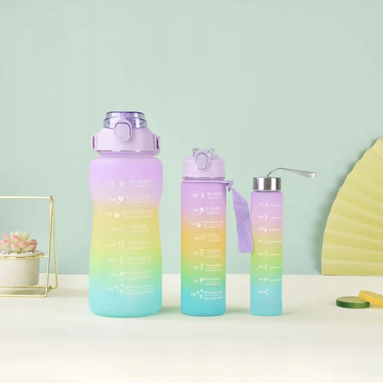 s ključavnico, zaradi česar je steklenica neprepustna. Za odpiranje steklenice s pritiskom na gumb zadostuje ena roka. Silikonska slamica omogoča pitje brez polivanja. Odprtina je dovolj široka za dodajanje ledenih kock in omogoča tudi enostavno čiščenje. Okolju prijazno brez BPAPlastenke za večkratno uporabo, kot je motivacijska steklenica, pomagajo zmanjšati število plastičnih steklenic, ki končajo v smeteh in škodijo okolju.