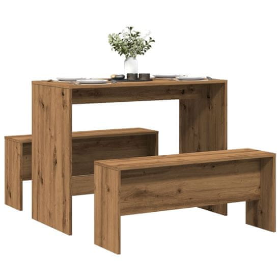 shumee vidaXL Komplet jedilne mize in klopi 3-delni artisan hrast inž. les