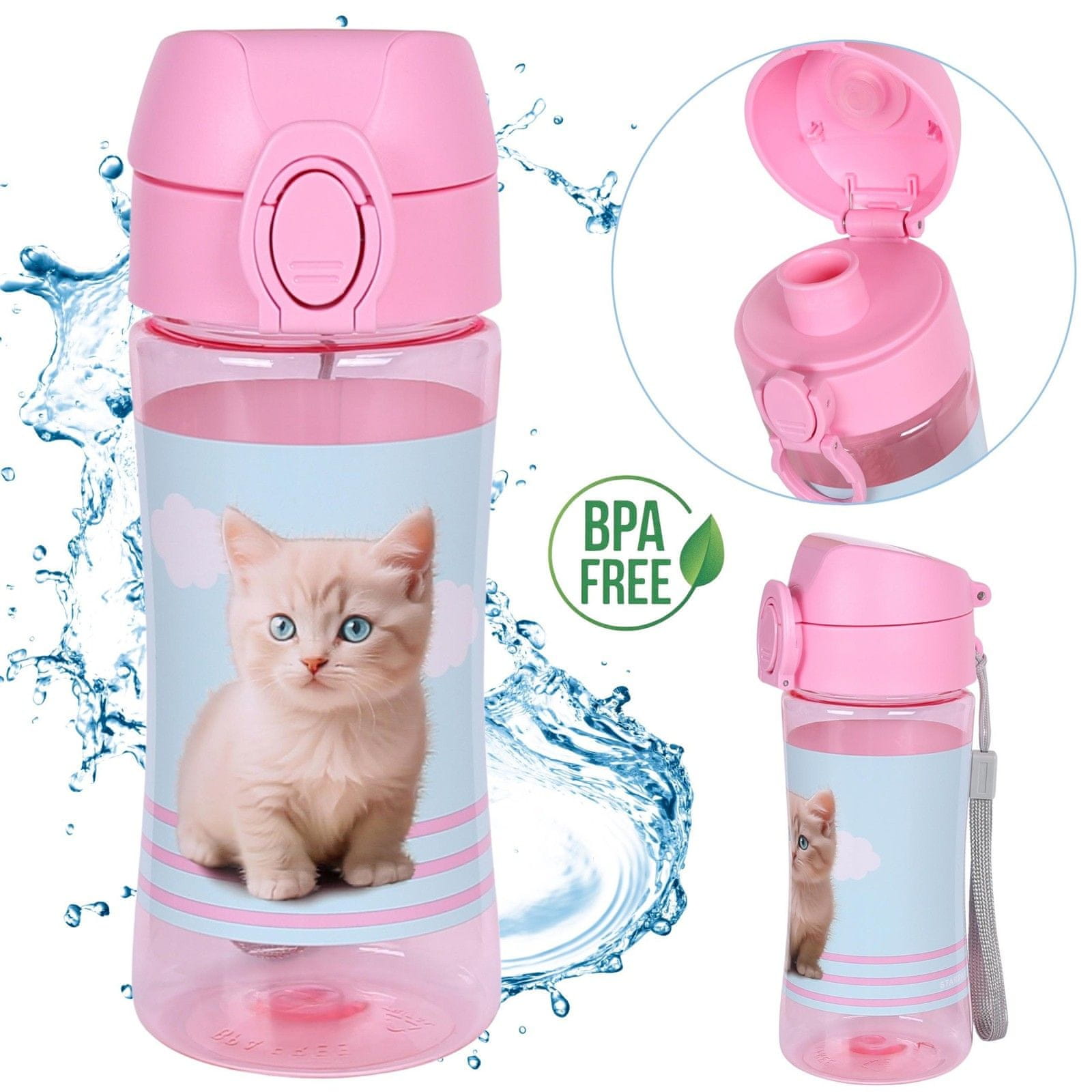 STARPAK Ljubka mačka roza STEKLENICA ZA VODO z ustnikom, TRITAN ŠOLSKA STEKLENIČKA za dekleta 450ml