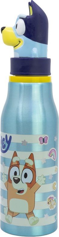 Različna aluminijasta steklenička za vodo za otroke, 690 ml, s figurico Bluey na pokrovu. Trpežna aluminijasta steklenica z vijačnim pokrovom, okrašena s 3D figuro priljubljenega otroškega televizijskega lika. Otroci jo bodo želeli imeti vedno pri sebi.
