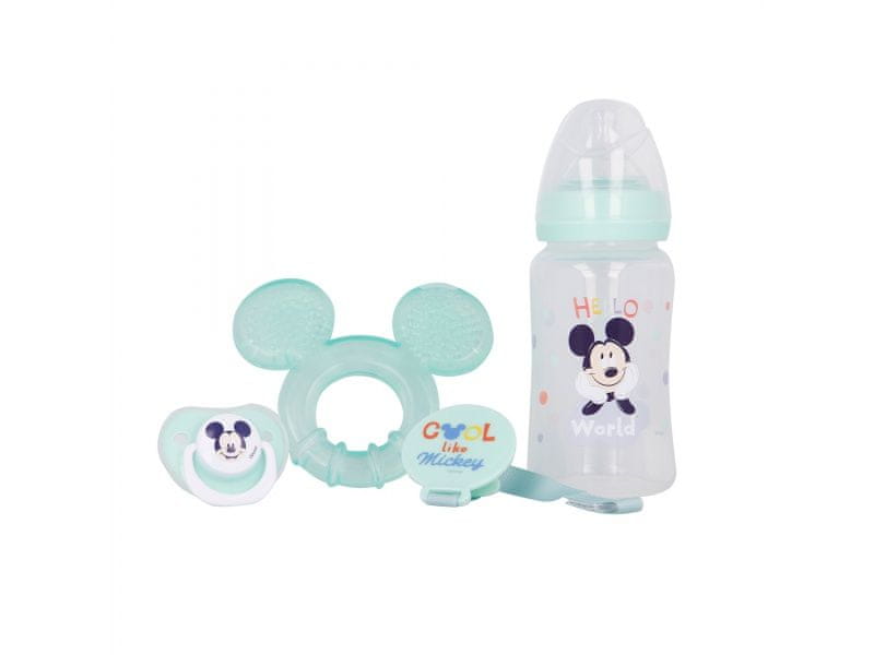 Stor DISNEY BABY darilni set 4 kosov MICKEY MOUSE (steklenička, grizalo, dude in držalo), 13008