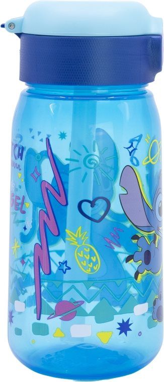 Otroška plastenka za vodo, 510 ml, s pokrovom in slamico, z motivom Stitch. Celoten opis