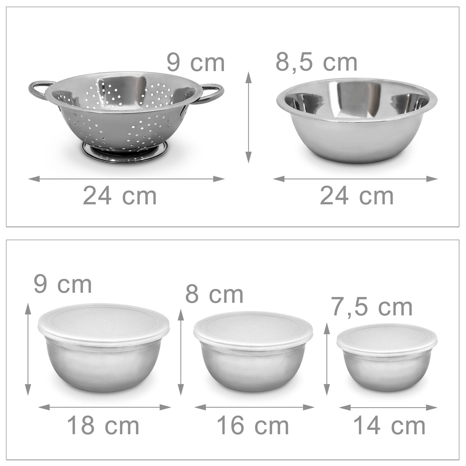 • Vključuje: 4 posode za mešanje, 1 cedilo, plastične pokrove