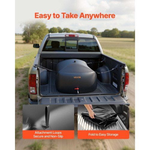 Prenosna in zložljiva rezervoar za vodo je zasnovan za vsestransko uporabo pri zalivanju vrta oskrbi z vodo v avtodomih in za nujno shranjevanje vode. Izdelan iz trpežnega odpornega na obrabo PVC materiala ponuja zanesljivo rešitev za prevoz in shranjevanje velikih količin vode. Njegova uporabniku prijazna zasnova opremljena z varnimi zankami za pritrditev in obsežnim kompletom dodatkov zagotavlja enostavno namestitev in priročno rokovanje v različnih okoljih.