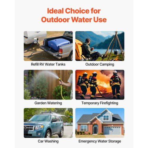 Ta prenosni in zložljivi rezervoar za vodo je zasnovan za vsestransko uporabo pri namakanju vrta oskrbi z vodo v avtodomih in za nujno shranjevanje vode. Izdelan je iz trpežnega odpornega na obrabo PVC materiala ki nudi zanesljivo rešitev za shranjevanje in prevoz velikih količin vode. Njegova zložljiva zasnova in ojačane ročaje za prenašanje omogočajo enostavno rokovanje shranjevanje in prevoz ko ni v uporabi.