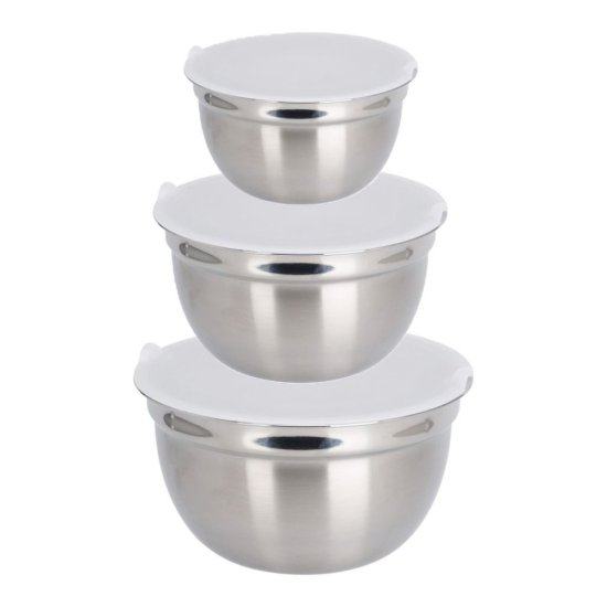 Sklop posod iz nerjavečega jekla s pokrovi – 3 kosi