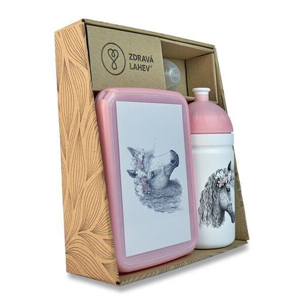 Set za zdravo stekleničko in zdravo malico vključuje: vsebuje zdravo stekleničko z nadomestnim zamaškom, škatlo za zdravo malico, šibki pokrovček za zdravo stekleničko.