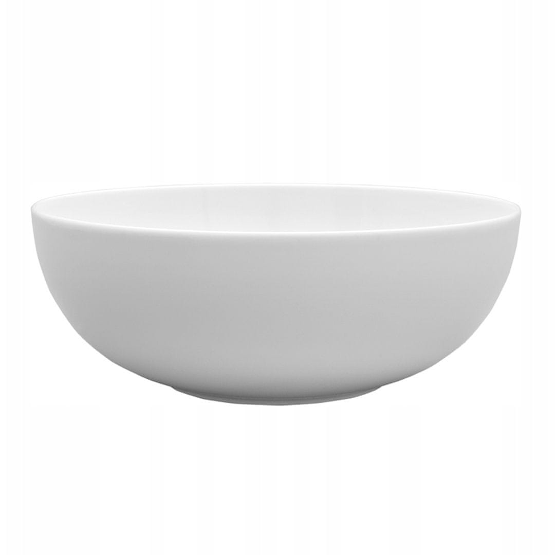 Moderno kolekcijo Venus zaznamujejo nežno zaobljene oblike, ki dopolnjujejo elegantno obliko. Skleda za solato, premera 30 cm, je izdelana iz kakovostnega porcelana v barvi klasične bele, ki se bo odlično ujemala z vsakim interierjem. Zaradi ojačanih robov je skleda izjemno odporna na poškodbe. Primerna je za uporabo v mikrovalovni pečici in pomivanje v pomivalnem stroju.