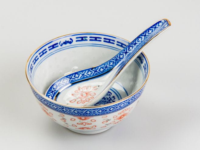 Skodelica z žličko za čaj, za juho, riž - set 6 skodelic rižev porcelan, zmaj zlati rob