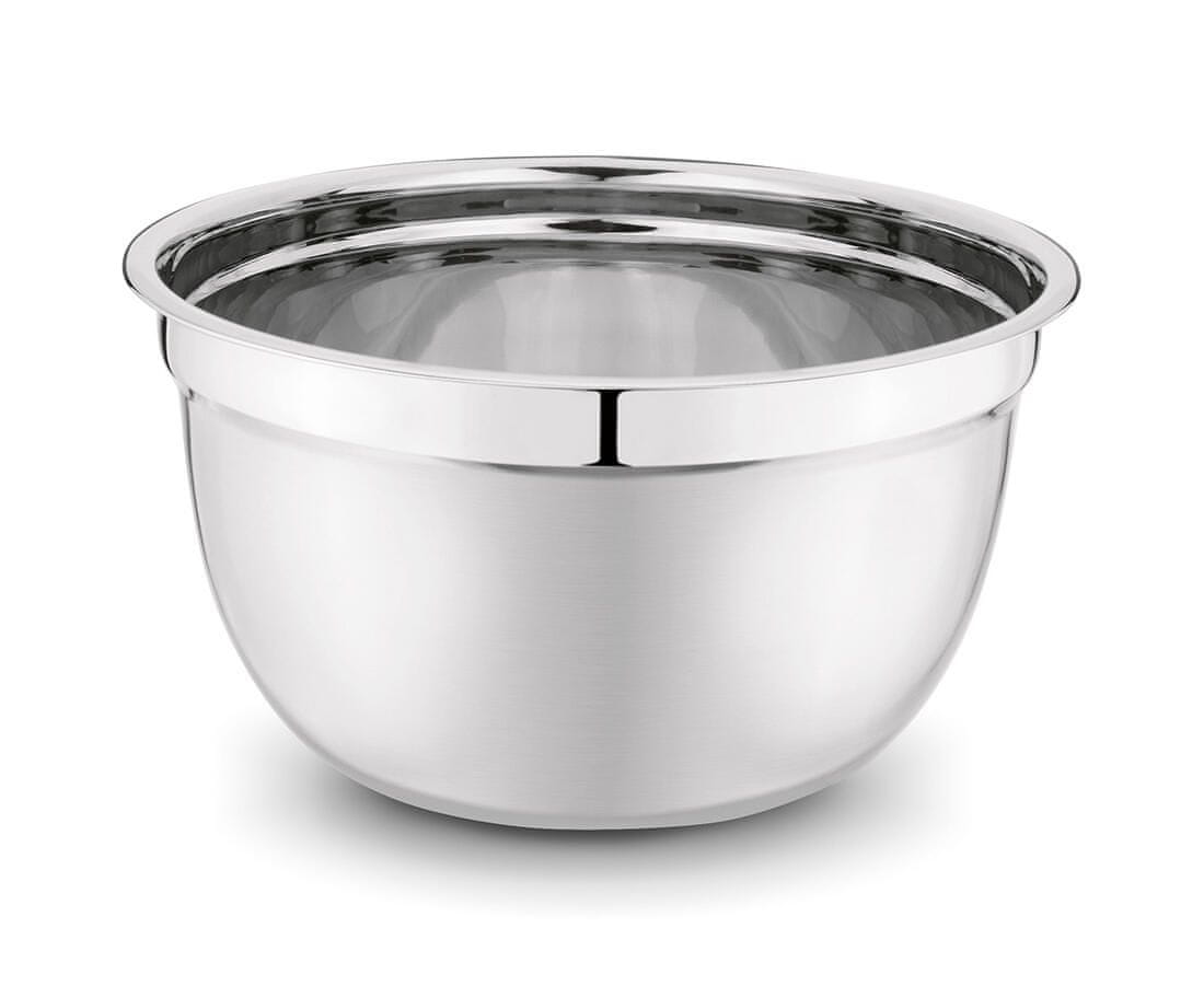 ekstra visoka skleda, premer 21 cm, 2,6 l, iz nerjavečega jekla – notranji premer: 19,5 cm- premer dna: 11,5 cm- skupna prostornina: 2,6 l- uporabna prostornina: 2,4 l