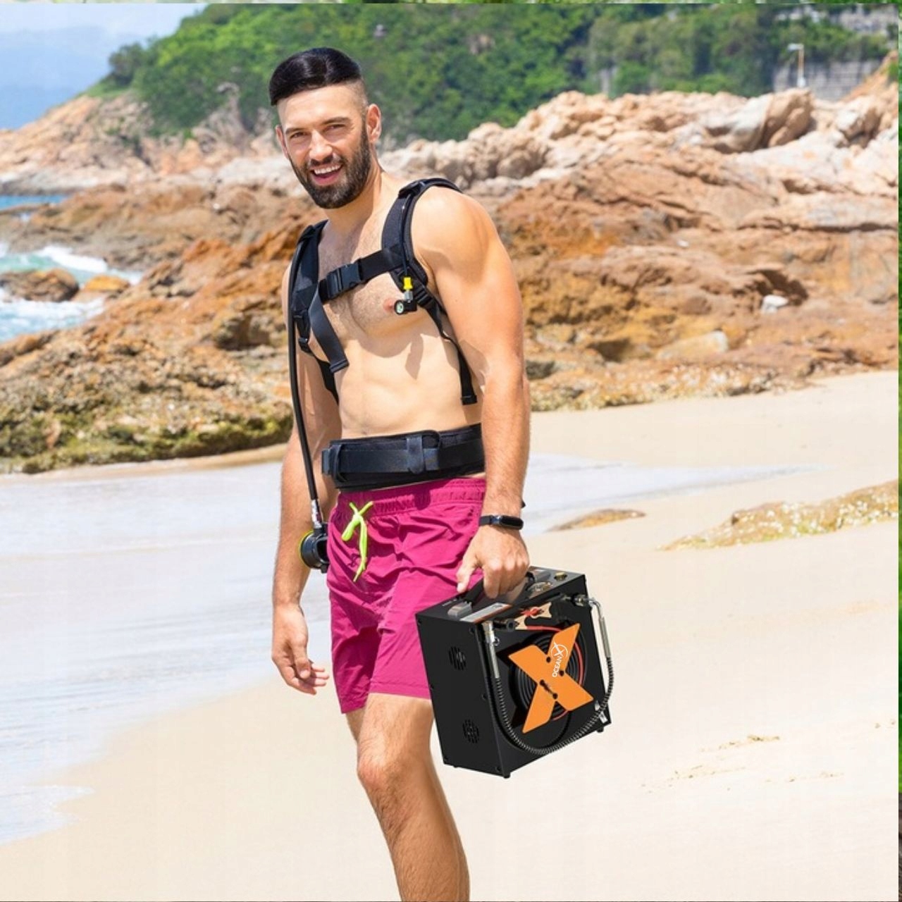 Prenosni električni zračni kompresor izOceanXje nepogrešljiva naprava za vsakega potapljaškega navdušenca. Zasnovan z enostavnost transporta in udobje uporabe v mislih ta kompresor omogoča hitro in varno polnjenje potapljaških jeklenk kjerkoli že ste. hvala kompaktna velikost Napravo lahko brez težav vzamete s seboj na vsako potapljanje, zaradi česar je izjemno praktična rešitev.