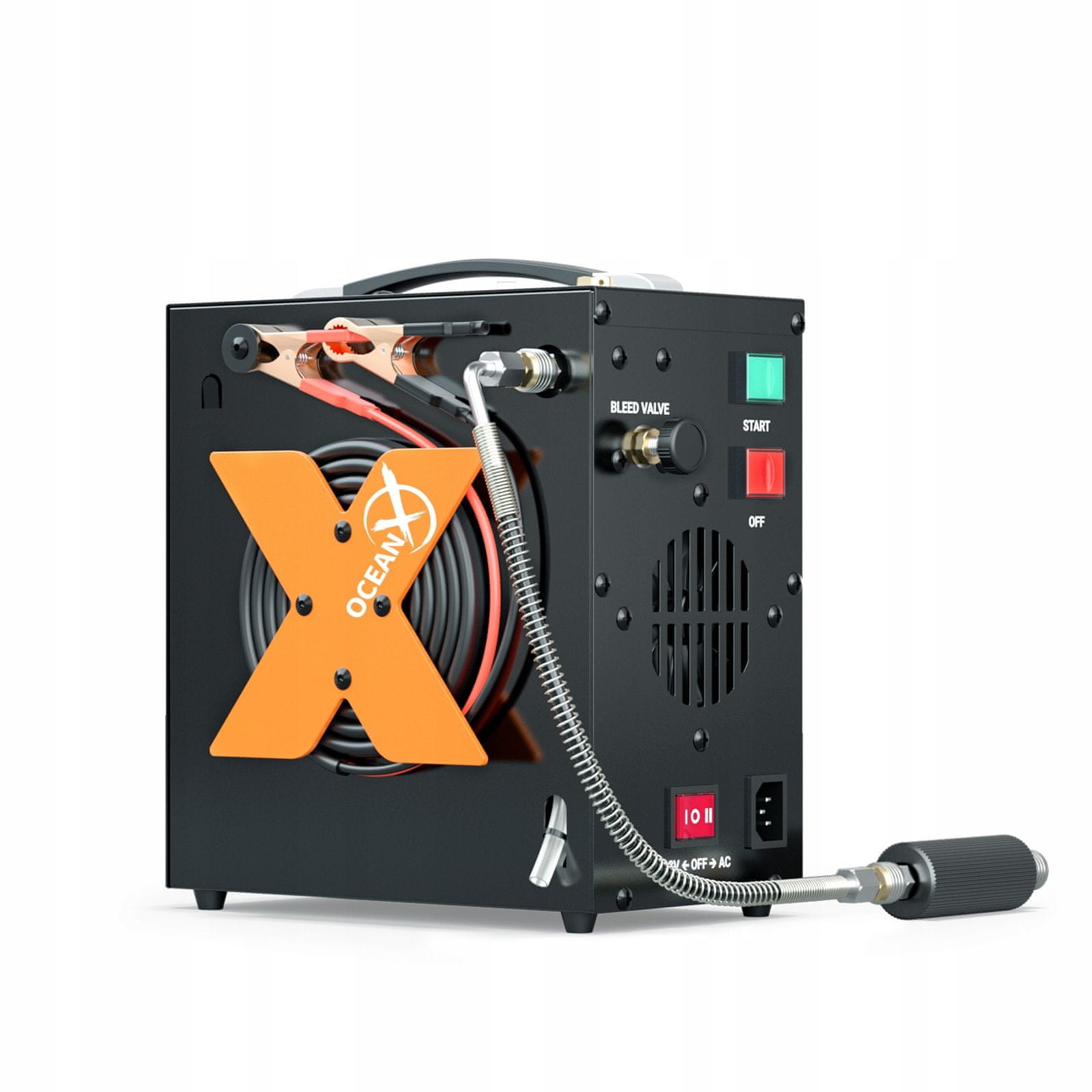 V kompresor je vgrajen pretvornik moči. To je črpalka HPA, ki se lahko napaja iz stenske vtičnice brez transformatorja, zaradi česar je varnejša za uporabo. Kompresor potapljaške posode OceanX lahko napaja 12 V avtomobilski akumulator ali 110 V/220 V gospodinjski AC vir napajanja. Zaradi tega je ta zračna črpalka bolj uporabna, saj jo je mogoče uporabiti kjer koli.