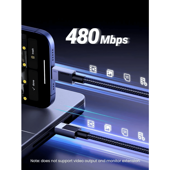 Kabel je opremljen s PD 3.0 in lahko doseže hitro polnjenje s 100W, ki lahko napolni iPhone 15 od 0 % do 60 % v 30 minutah in MacBook Pro od 0 % do 42 % v 30 minutah.