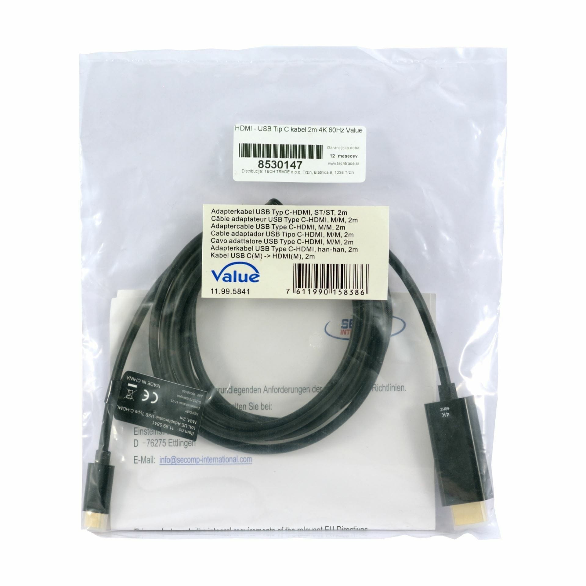 Value kabel USB TipC - HDMI 2m 4K 60Hz