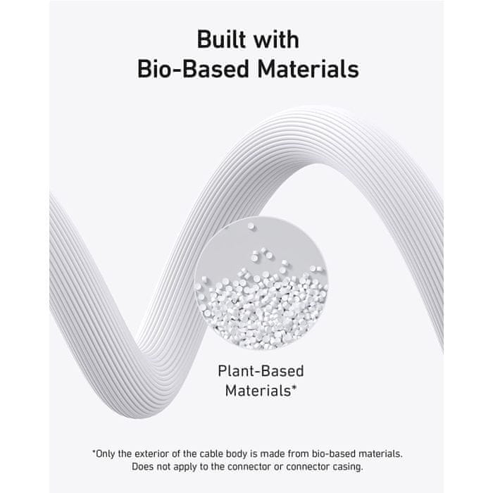 • Zasnova na biološki osnovi: Zunanjost ohišja kabla je izdelana iz materialov na biološki osnovi iz rastlin, kot sta koruza in sladkorni trs.