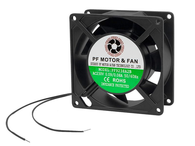 Tehnične specifikacije: – Izmera: 92 × 92 × 38 mm – Napajanje: 230 VAC – Pretok zraka: 1,5 m: Hitrost: 2500 vrtljajev na minuto – Stopnja hrupa (na 1 m): 76,5/h – Tok: 0,07 A – Hitrost: 2500 vrtljajev na minuto – Stopnja hrupa (na 1 m): 37dB – Weight: 360g – Operating temperature: –20 C ~ +80 C Celoten opis