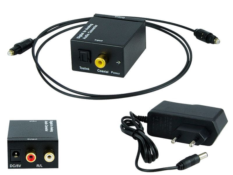 Zvočni pretvornik, zasnovan za domače ali profesionalno preklapljanje zvoka. Pretvarja digitalne koaksialne signale ali signale Toslink v analogne zvočne signale L/R in omogoča povezavo z zunanjo napravo.