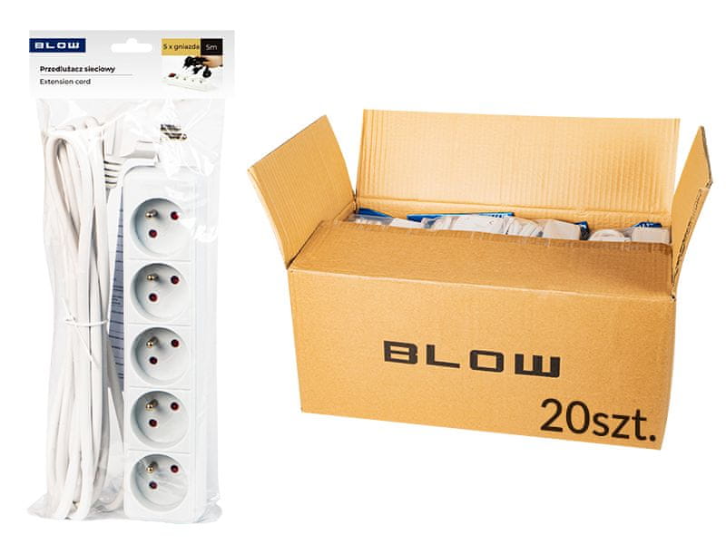 Blow 98-519# pr-570p 5 vtičnic podaljšek za ozemljitev 5 m bela 3x1,5 mm paket