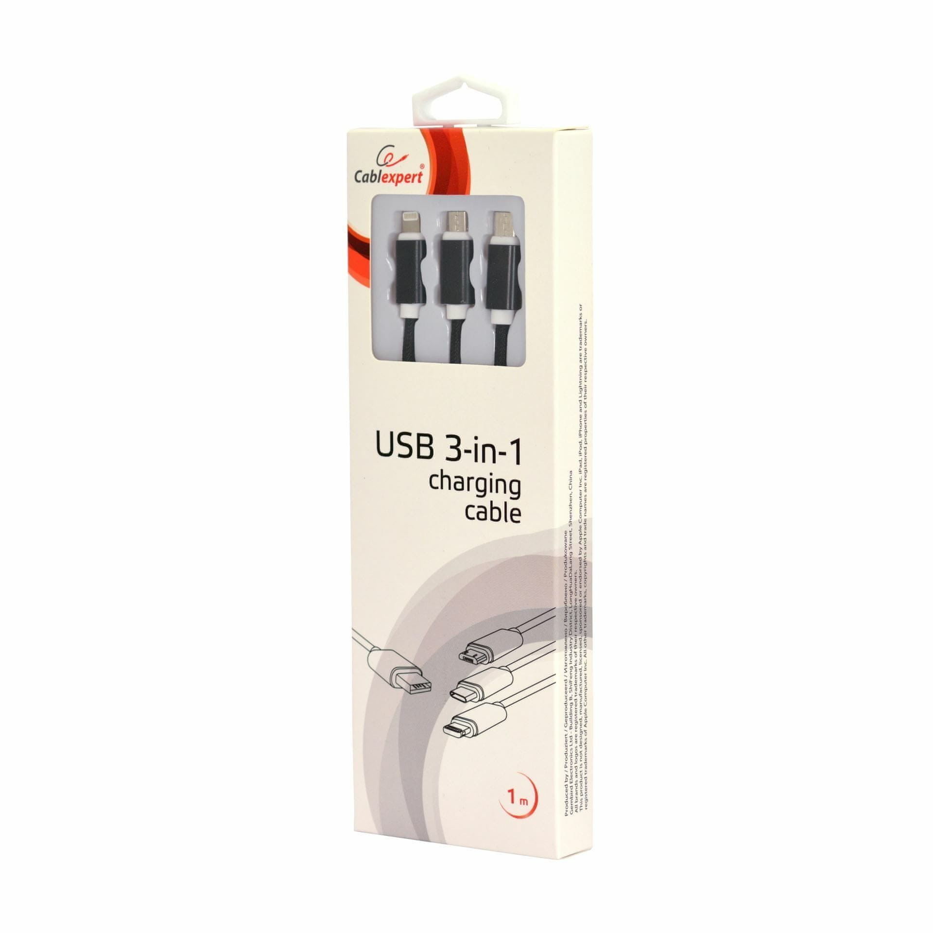 CABLEXPERT kabel USB Lightning/mikro/ TipC 1m črn za napajanje CC-USB2-AM31-1M