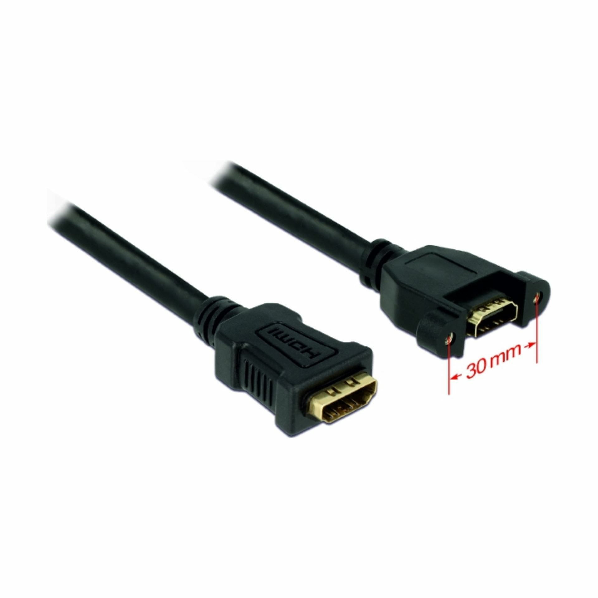 Delock kabel omogoča razširitev HDMI povezave do različnih naprav. Ženski vmesnik lahko z vijaki vgradite. To omogoča namestitev HDMI vmesnika na lahko dostopna mesta.