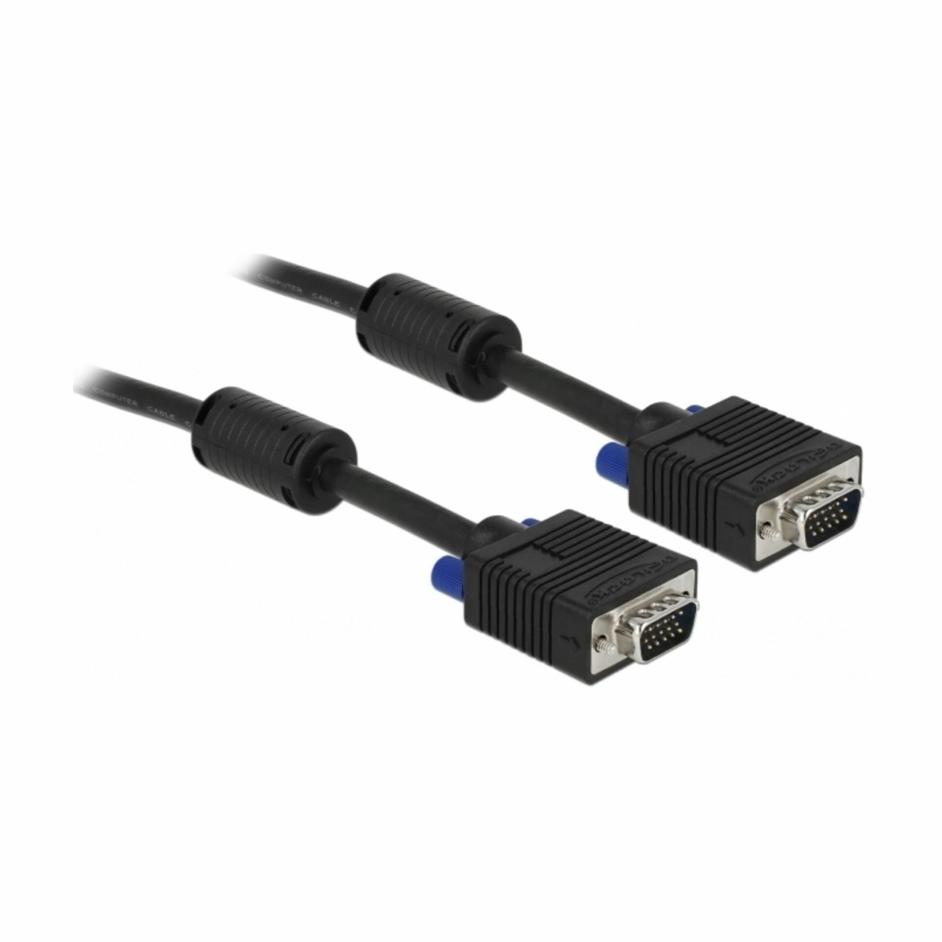 Delock VGA kabel 1m črn za povezavo računalnika z ekranom ali KVM preklopnikom, podprte ločljivosti do 1280×1024 pri 60Hz. Celoten opis