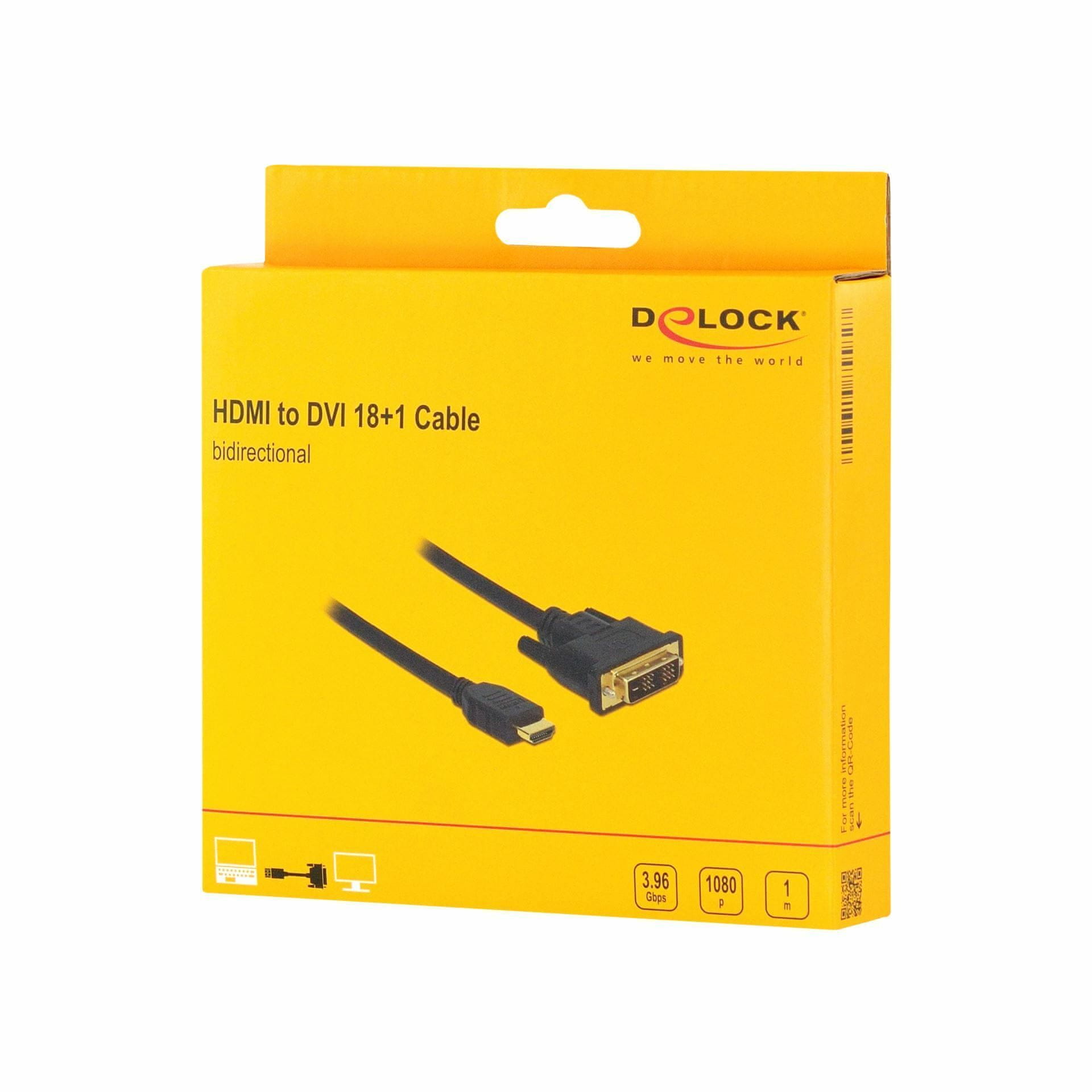 Delock kabel namenjen povezavi HDMI monitorja ali projektorja z DVI vmesnikom računalnika ali prenosnika.