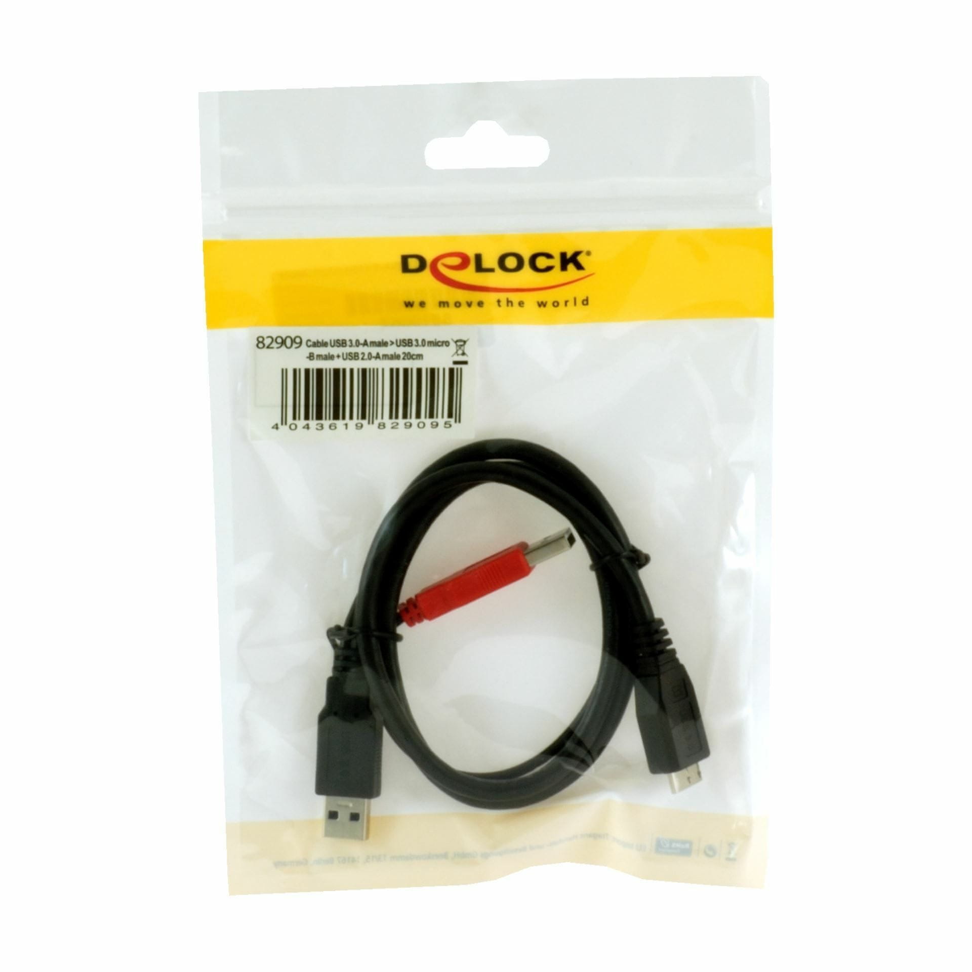 Delock kabel USB 3.0 Y 2xA-B mikro 20cm 82909