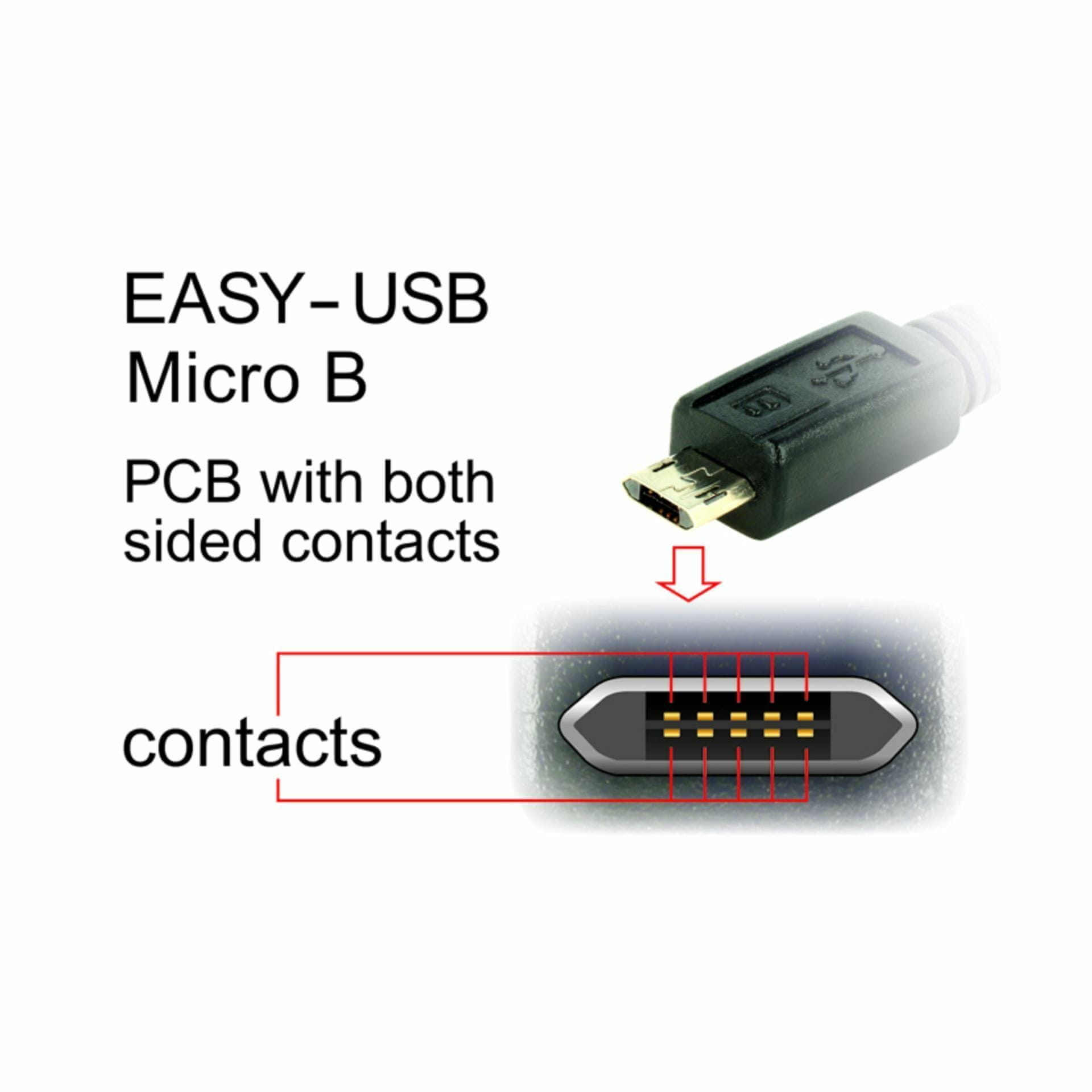 Delock kabel z EASY-USB tip-A moškim in EASY-USB micro moškim vmesnikom lahko vključite v primeren USB vmesnik ne glede na to, kako je konektor obrnjen. To poenostavi priključitev vmesnikov.