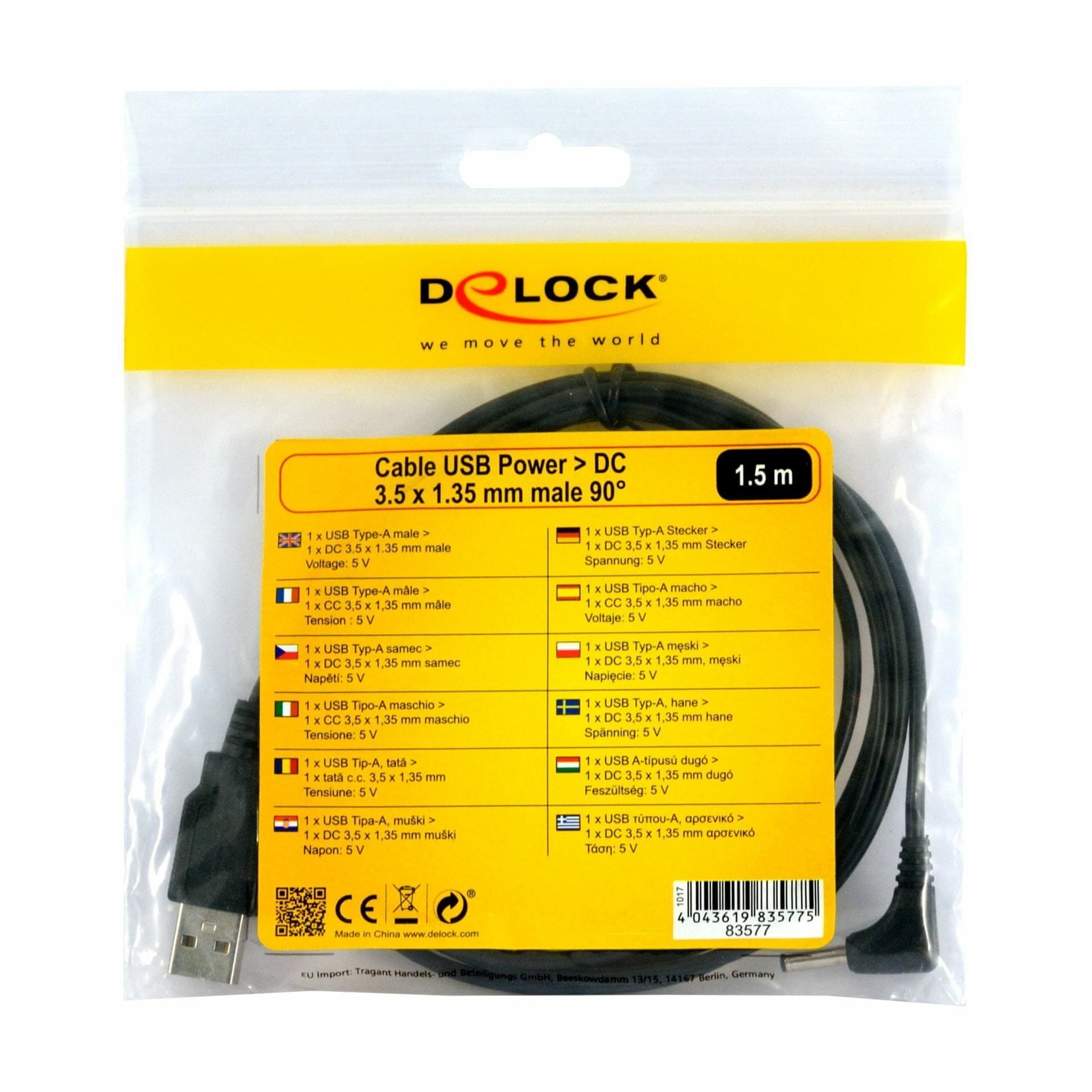 Delock kabel USB M - napajalni M DC 3,5 fi x 1,35mm kotni 1,5m 83577
