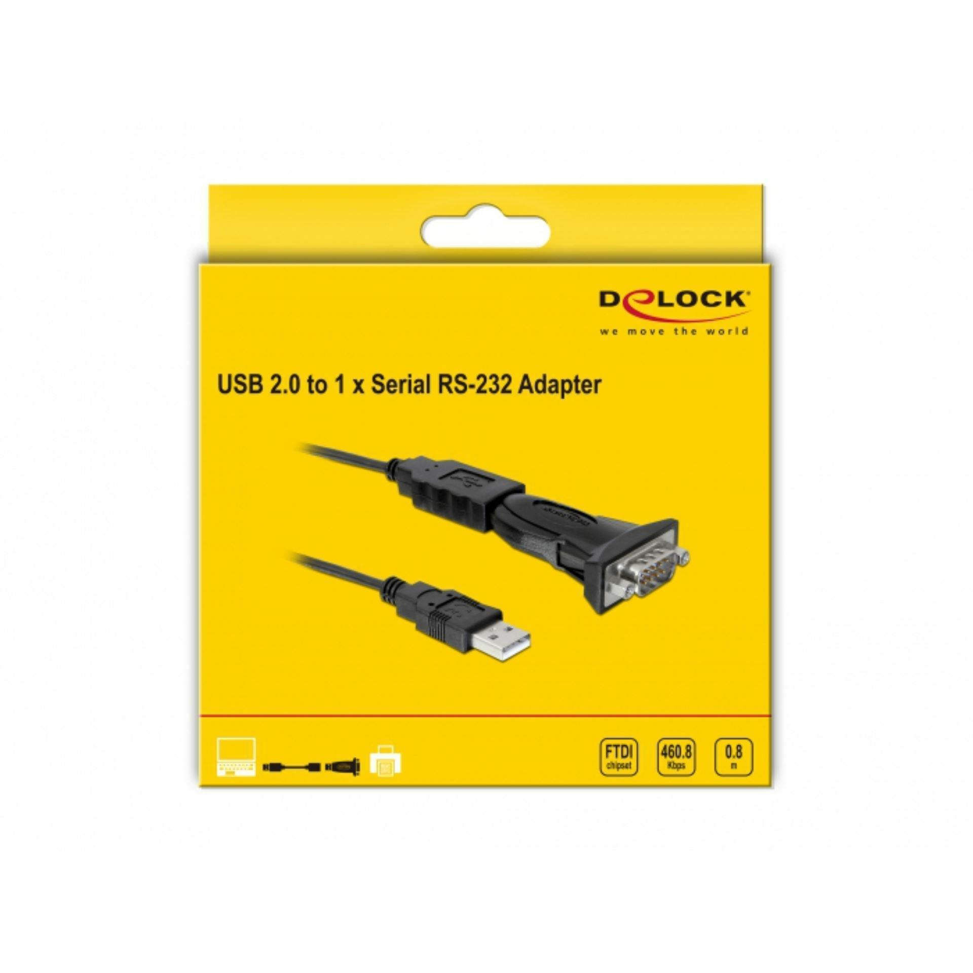 Delock USB pretvornik na serijski RS-232 vmesnik omogoča priključitev serijskih naprav na USB tip-A priključek.