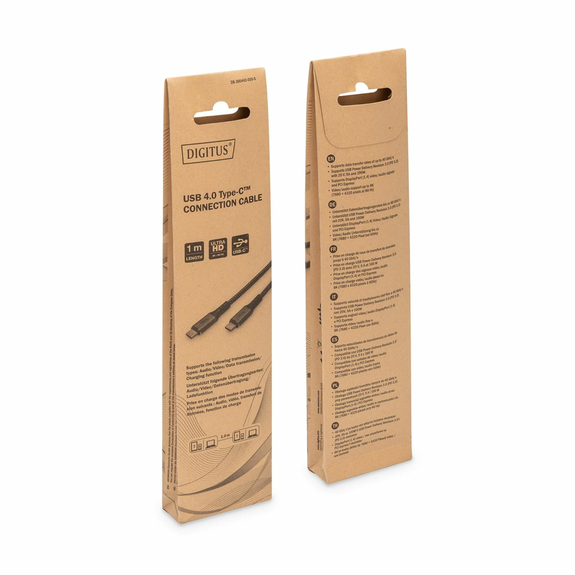 Z Digitus 4.0 kablom lahko prenašate avdio/video signale, podatke in tudi napajanje. Hitrost prenosa podatkov je 40 Gbit/s. Poleg tega podpira tudi ločljivosti 8K pri 60 Hz in 4K pri 60 Hz. Zahvaljujoč USB Power Delivery Revision 3.0 je zagotovljena funkcija hitrega polnjenja…